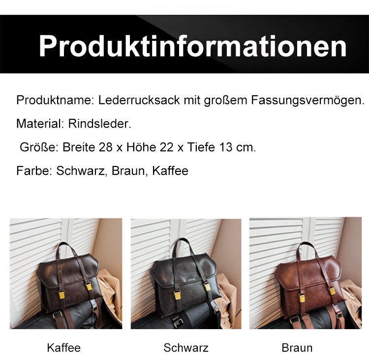 Rucksack aus pflanzlich gegerbtem Rindsleder mit großer Kapazität